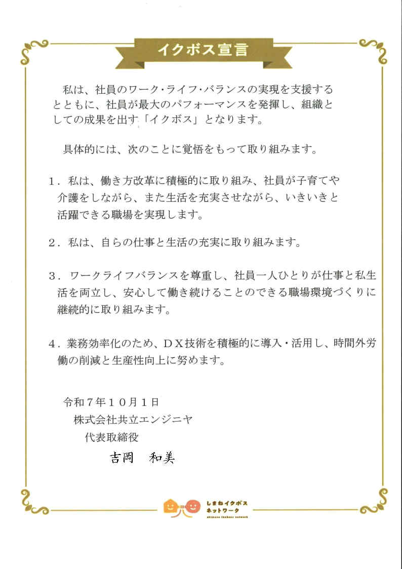 共立エンジニヤ「イクボス宣言」のご報告
