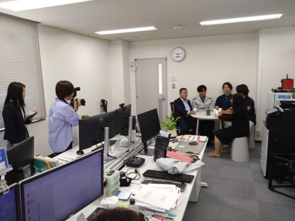 全員で談笑している風景と各自1名ずつのインタビュ-と写真撮影がありました。