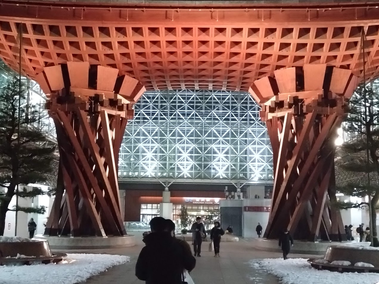 3日の夜に市内へ出かけましたが、金沢駅東口のモニュメントは迫力ありました。